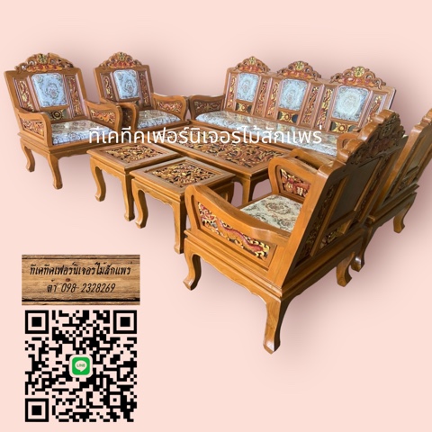 TKTEAK เฟอร์นิเจอร์ไม้สักจังหวัดแพร่ จำหน่ายและสั่งทำเฟอร์นิเจอร์ไม้สักทุกชนิดค่ะ มีหน้าร้านตั้งอยู่ ต. ร่องกาศ อ. สูงเม่น จ. แพร่ สอบถามรายละเอียดสินค้าเพิ่มเติม ติดต่อ ต้า เบอร์โทรศัพท์ : 098-2328269 Line ID : 0982328269 ชุดรับแขกหลุยส์ ทั้งชุดมี 8 ชิ้น ราคาชุดละ 39,000 - 41,000 บาท